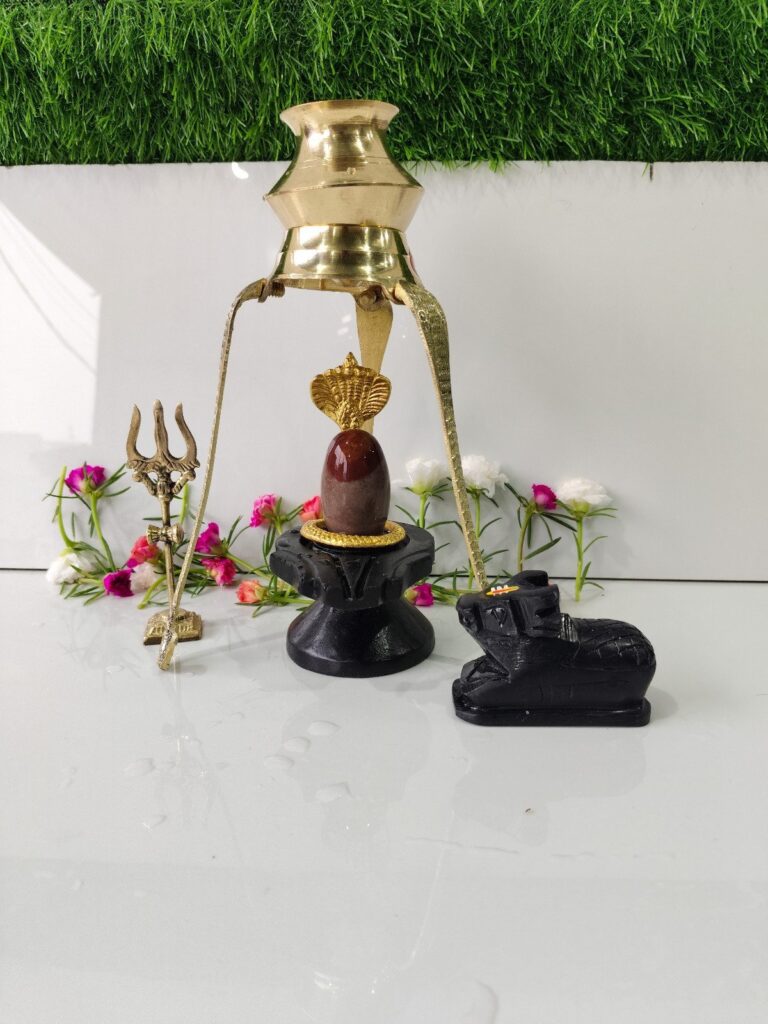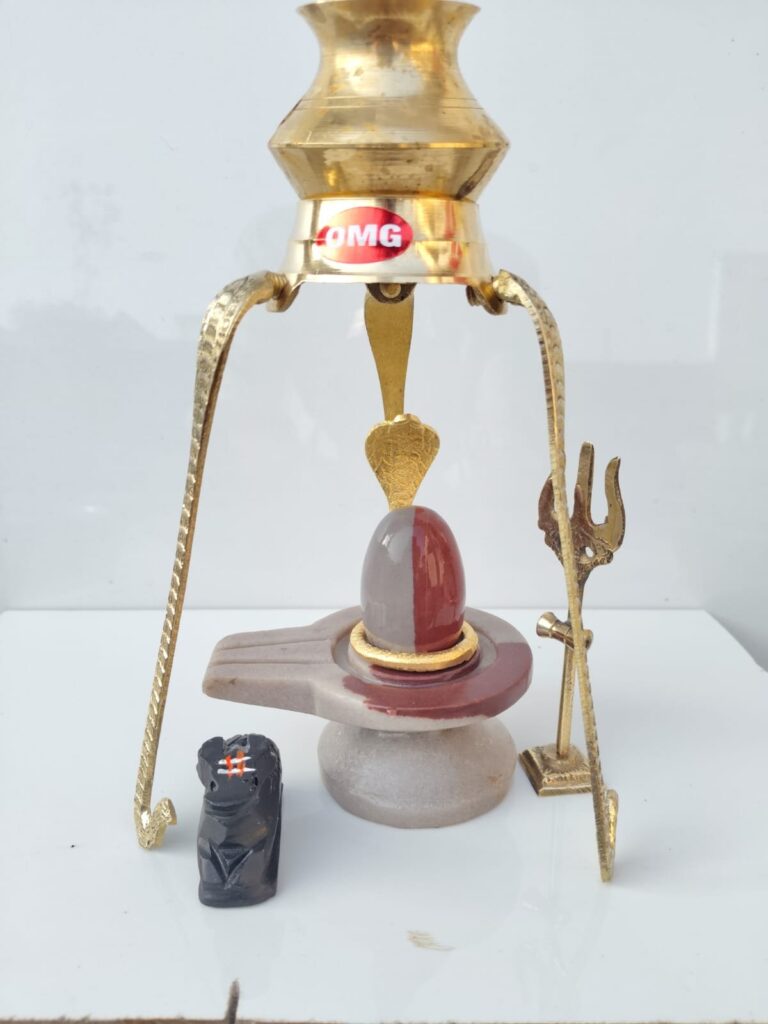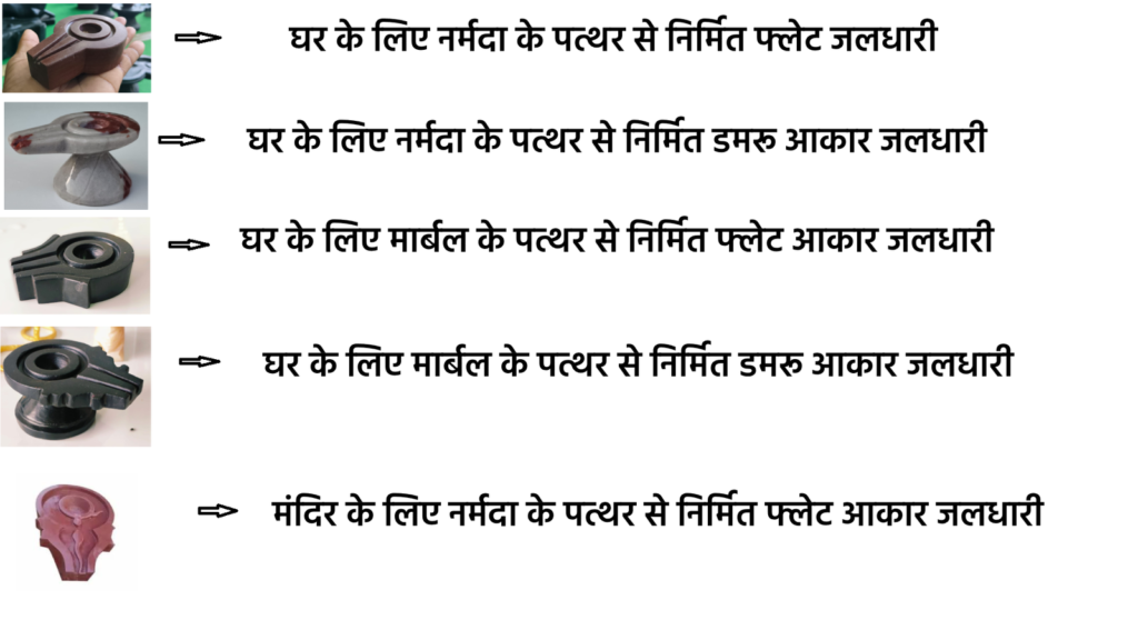 You can buy any type of Jaladhari made from the stones of Maa Narmada, flat or Damru, to keep the Shivlinga. Jaladhari should be taken according to the size of Shivling (like 4 inch Jaladhari for 2 inch Shivling, 6 inch Jaladhari for 3 inch Shivling).